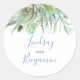 Succulents Greenery Dusty Blue Wedding Classic Round Sticker