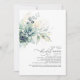 Watercolor greenery, sage green succulents and gold eucalyptus leaves bridal shower invitations