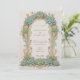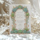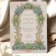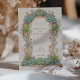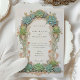 This sophisticated wedding invitation features a stunning Art Nouveau design with intricate succulent and floral motifs. The front of the card showcases a beautifully crafted arch adorned with lush green succulents and delicate pink accents, framing the wedding details elegantly. The reverse side continues the botanical theme, with matching succulent arrangements that add a touch of nature-inspired beauty. The soft pastel background complements the detailed artwork, making this invitation perfect for a garden or nature-themed wedding. Ideal for couples seeking a blend of vintage charm and modern elegance, this invitation is a timeless piece of wedding stationery.