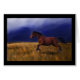 A spectacular artwork capturing the horse in movement as the first sudden sound of thunder came over the land, striking colors of the storm clouds over an Australian farming landscape with the horse in full motion, a great art piece for any home. Hand painted by multiple award winning artist Michelle Wrighton.