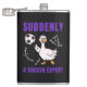 Well made flask, a little better than I had expected. Flask came in clear plastic box which gave it a nice presentation when I took it out of the zazzle packaging. Image is not printed on flask but on sticker. Don't know how this will hold up I haven't used it yet. This would make a Great gift! I plan to purchase more for friends! Cheers. I thought a little brighter than computer. Very crisp, writing wasn't