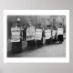 Reproduction of a photograph shows Suffragettes carrying signs, one of which says: Votes for Women!
