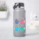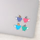 Set of 4 stickers featuring illustrations of sugar gliders sitting inside teacups. The grey and brown animals are setting inside of purple, coral, bright blue and green coloured tea cups.