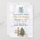 Winter Birthday Invitation with marble background and classic Nutcracker characters.