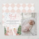 Send heartfelt thanks in the sweetest way with this Sugar Plum Nutcracker Photo Thank You Card! Adorned with pastel pinks, sparkling stars, a dainty ballerina, and festive Nutcracker characters, this card is perfect for expressing gratitude after your little one’s first birthday or holiday celebration. Add your baby’s photo for a personal and charming touch that captures the warmth and magic of the season. A delightful keepsake for family and friends!
