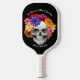 Sugar Skull Art Collage Colourful Flowers on Black Pickleball Paddle