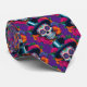 This digital artwork of a sugar skull decorated for the Day of the Dead. The style is reminiscent of Mexican folk art, with bold outlines and flat colours. The skull is a bright white with decorative sugar makeup decorating its forehead and a playful, loopy brow line. The sugar skull is wearing a black top hat with a hot pink band around it.