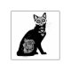 A black cat with day of the dead sugar skull make-up on in a backdrop of teal