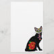A black cat with day of the dead sugar skull make-up on in a backdrop of teal