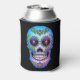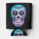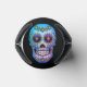 Dia de los Muertos sugar skull is so colourful in blue with flowers and gold sparkle eyes.