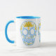 Blue, yellow, & green Sugar Skull mug. Also check out Jupiter Kitten's Sugar Skull t-shirts!
