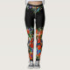 Vibrant floral Sugar Skull design on high quality black leggings. These versatile and comfortable leggings feature a bouquet of vibrant roses and foliage surrounding a sugar skull painted for the Mexican Day of the Dead. Bold and unique. Superior quality leggings perfect for working out or just lounging around. Very bold and very lovely!
