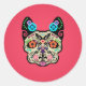 Sugar Skull Frenchie - Pink Classic Round Sticker