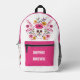Sugar Skull Fuchsia Flowers Custom Name Printed Backpack