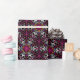 Wrapping paper printed with colourful kaleidoscopes of grinning sugar skulls and spider webs. For fun Halloween birthday, or day of the dead.