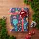 Sugar skull on dark blue pattern wrapping paper