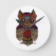 Sugar Skull Owl Hat Round Clock