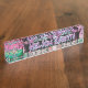 Sugar skull with rainbow coloured background in shades of pink, purple and lime green. Makes a very unique name plate for a modern, fun, cool look.