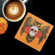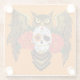 Sugar Skull Roses Owl Glass Coaster