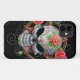 This intricate sugar skull design sits on top of a five point star that is framed by a large circle. The skull is decorated with swirls and dots as well as a large rose and leaves in the middle of the forehead. Delicate vines weave their way around the outer circle with two roses appearing on either side. The skull sits on a pure black background giving this iphone4 case a beautiful contrast. This gorgeous Day of the Dead sugar skull makes an aggressive and stylish pattern.