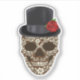 Fun and festive male sugar skull sticker featuring a traditional vintage Sugar Skull wearing a black toy hat adorned with a red rose. Designed for people, young and old who on November 2 celebrate Dia de los Muertos, a day to remember our friends and family member who left before us.