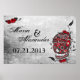 Sugar Skull Wedding Date Poster. A great Dia De Los Muertos Day of the Dead sugar skull design poster in red, black, white and greys. Poster is designed so you can customise with your own text with your wedding date and bride and grooms names or leave blank and write whatever you want on it yourself. Many brides use this poster for their seating charts or to add pictures on it of the bride and groom growing up and I have had one person use it for guest signatures for their wedding as a token of remembrance for the bride and groom.