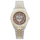 A pretty damask background in orange on a black background with a pretty sugar skull design. Shown here on an elegant watch face. Great for Halloween or Day of the Dead celebrations. You can customise this with different watch styles.