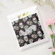 A colourful favour bag design for Day of the Dead festivities, featuring a variety of decorative sugar skulls with flower and swirl accents on an optional black background. If you prefer, the 'Feliz Dia de los Muertos' text layer can be deleted for a pattern-only design. Search ID725 to see other colour choices and products with this fun pattern.