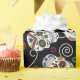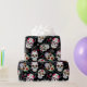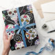 A colourful gift wrap for Day of the Dead festivities, featuring a variety of decorative sugar skulls with flower and swirl accents on an optional black background. If you prefer, change to any other background colour. Search ID725 to see other colour choices and products with this fun pattern.