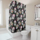 A colourful shower curtain design for Day of the Dead festivities, or just to suit your fun, everyday quirkiness, featuring a variety of decorative sugar skulls with flower and swirl accents on an optional black background. If preferred, the provided 'Feliz Dia de los Muertos' banner and text layer can be deleted to use this design for other occasions. Search ID725 to see other colour choices and products with this fun pattern.