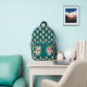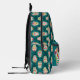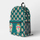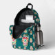 This backpack features Dia De Los Muertos style sugar skull graphics set against a teal background. The front pocket is ready to be personalised with your initials in dark teal lettering.