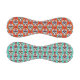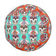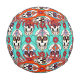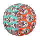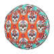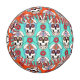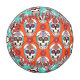 This graphic patterned artwork features an illustrated sugar skull, or calavera, decorated with beads and flowers as well as a Christian cross on each forehead. This motif is commonly used during Day of the Dead celebrations or Dia de los Muertos, a Latin American holiday.