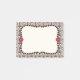This graphic patterned artwork features an illustrated sugar skull, or calavera, decorated with beads and flowers as well as a Christian cross on each forehead. This motif is commonly used during Day of the Dead celebrations or Dia de los Muertos, a Latin American holiday.