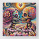Sugar Skulls in Love Chalk Pastel Personalised Square Wall Clock