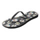 These cute, sugar skulls on black, with polka dots, print flip flops are great for every day wear. White, sugar skulls, tiled on a polka dot, and black, background.