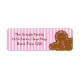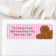 Customisable Christmas address labels or gift tags with an adorable little gingerbread man with pink candy nose and buttons and white frosting. Pink and white striped background. Coordinated note cards, postage stamps, stationery and mugs also available! PinkInkArt original!