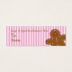 Customisable Christmas gift tags with an adorable little gingerbread man with pink candy nose and buttons and white frosting. Pink and white striped background. Coordinated note cards, postage stamps, stationery and mugs also available! PinkInkArt original!