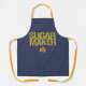 Sugarmaker with maple leaf for maple syrup sugar makers. The maple leaf is a red and yellow gradient colour and the name is in all capital letters in a gold speckled font.