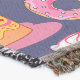 A quality printed throw has its advantages. This is a much finer weave throw than its loopier cousins, and though lighter, it is worth the investment for custom room accessorizing. The back is much prettier than the typical brown, and the fringe on the long sides very vivid, the selvage nicely done. Before photographing, I washed the throw in cold water, delicate, with a thicker woven throw the same size. On tumble dry low, this throw was dry in half the time as the other. This is a very practical quality if you use throws for furniture covers or to wrap up in frequently. The sleekness of the fabric makes it a great layer for accenting or protecting without the feeling of sitting on too much stuff. Perfect for napping or when you feel a light chill coming on. The color printing is beautiful and on this fabric, matched the design and color of my Photoshop image. This is an advantage for blending room fabrics and colors. The fringe on the short sides prints the colors from the design image and therefore varies from the side fringe. I streaked a white fractal line through the plaid pattern to give the illusion of weaving. This printed as crisp as an illusory thread, and put some white in the short side fringe, showing another advantage of print vs loomed- for artistic purposes, line lines, detail, and color integrity can be planned and preserved. My loomed throws have color limitations and more of a needlepoint texture. Print throws reproduce an exact image. The throw felt a little stiff straight out of the package, but this went away in the first delicate wash. Of course I searched the wash water for ink or bleeding and there was none.