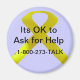 Support World Suicide Prevention Day every September 10. Add your crisis phone number for your country. The number on this button is the Suicide Crisis number for USA. More global information is available at www.IASP.info under the help tab. The button design belongs to me aka gramabarb.