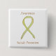 Suicide Prevention awareness cause uses a yellow ribbon. The awareness ribbon pin features the painting of a yellow awareness ribbon on a custom button pendant. The awareness pendant notes "Suicide Prevention Awareness". The yellow awareness ribbon art lapel pins or buttons can be customised with personalised messages to make great cause buttons for fundraiser pendants, awareness pin gifts, or other special pendant events or awareness lapel pin for the cause's occasions.