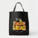 Yellow and Orange Suicide Squad logo within a black bomb on white and black backgrounds.