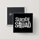 Black and White Suicide Squad logo with a Skull in the letter Q. White letters on black background.