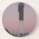 The unusual triangular shaped Sullivan's Island lighthouse stands tall against the amazing pink and blue sky.