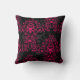 Sultry Flaming Pink and Black Floral Damask Cushion
