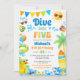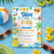 💦☀️ Make waves with this bright and playful “Dive into Five” Pool or Beach Party Birthday Invitation — perfect for celebrating your little guy’s fifth birthday in fun, sunny style! Featuring cheerful watercolor beach elements like rubber ducks, pool floats, palm trees, a smiling sun, and colorful bunting, this design is bursting with vibrant summer colors including aqua blue, sky blue, leafy green, sunshine yellow, and bright orange.