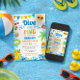 The bold, modern typography paired with whimsical water splashes creates a fun and energetic look that’s perfect for a backyard splash pad party, pool celebration, or lakeside birthday bash. This invitation is designed with a clean white background and colorful border illustrations for a bright, crisp finish.