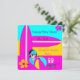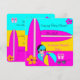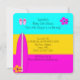 Surfing Baby Cute Baby Shower, Beach Baby Girl Pink and Teal Yellow, Pink Surfboard, Beach Ball, Sunglasses, Flowers, Thong, Flip flops, "it's a girl" Summer Baby Shower. Party Invitation. just customise with your details.