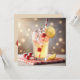 Party drink with lemon slices and cherries on red and white checked cloth for a barbecue party.