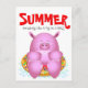 Summer Beach BBQ Pool Party Whimsical Cartoon Pig Postcard